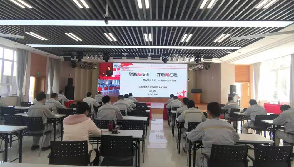 12月15日,公司邀请云南省委宣讲团成员刘化军同志到公司讲授党的十九届五中全会精神专题党课。公司领导班子、全体党员、入党积极分子参加了培训。